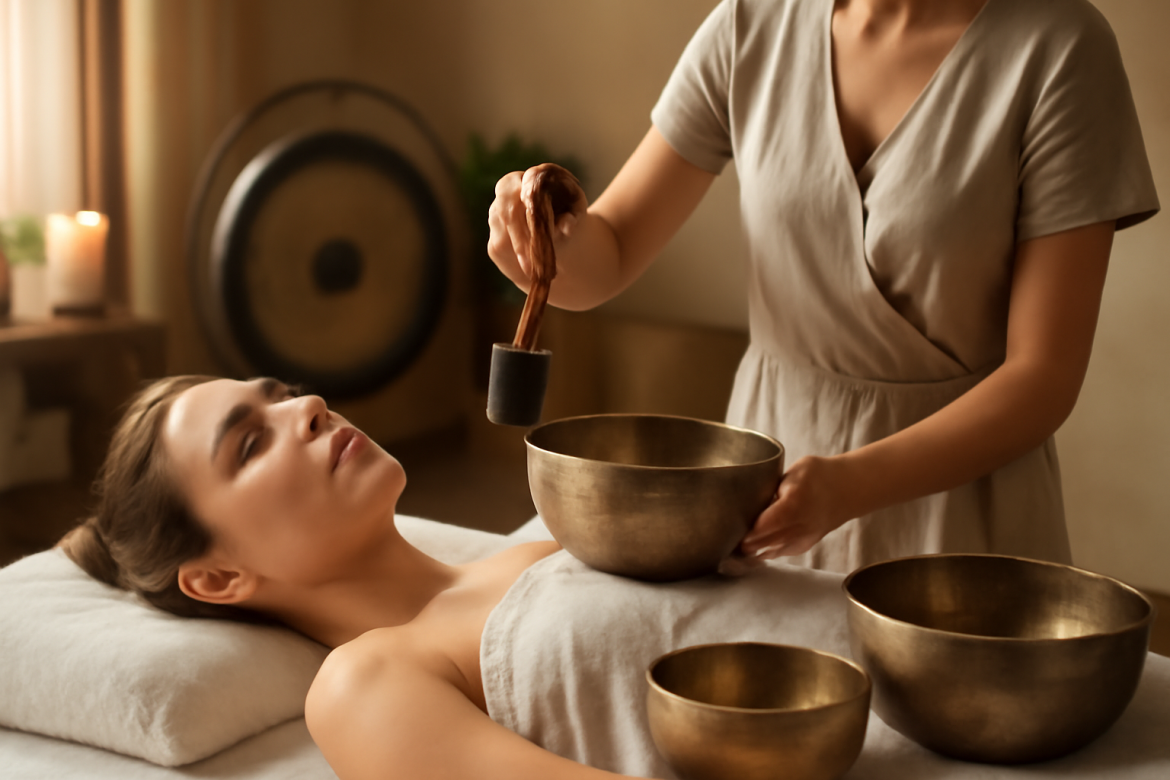 Masaż relaksacyjny — łączenie z sesją mis i gongów dźwiękowych